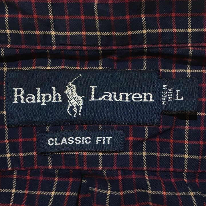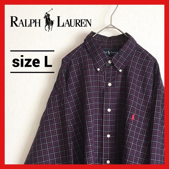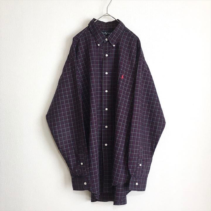 90s 古着 ラルフローレン BDシャツ チェックシャツ ゆるダボ 刺繍 L
