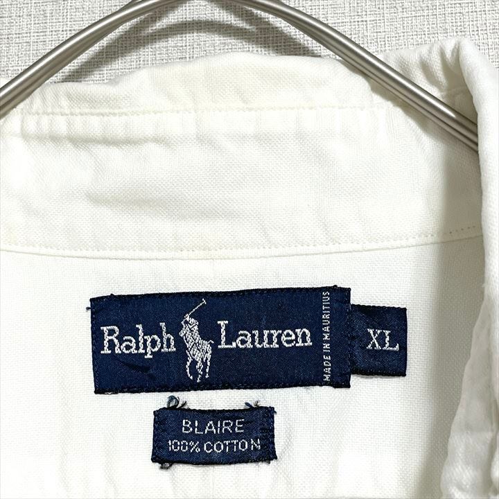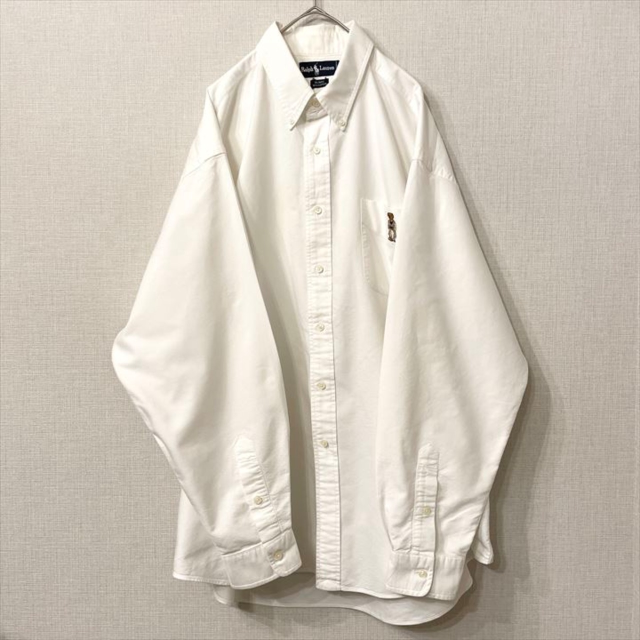90s 古着 ラルフローレン BDシャツ 白シャツ ポロベアー 刺繍 XL