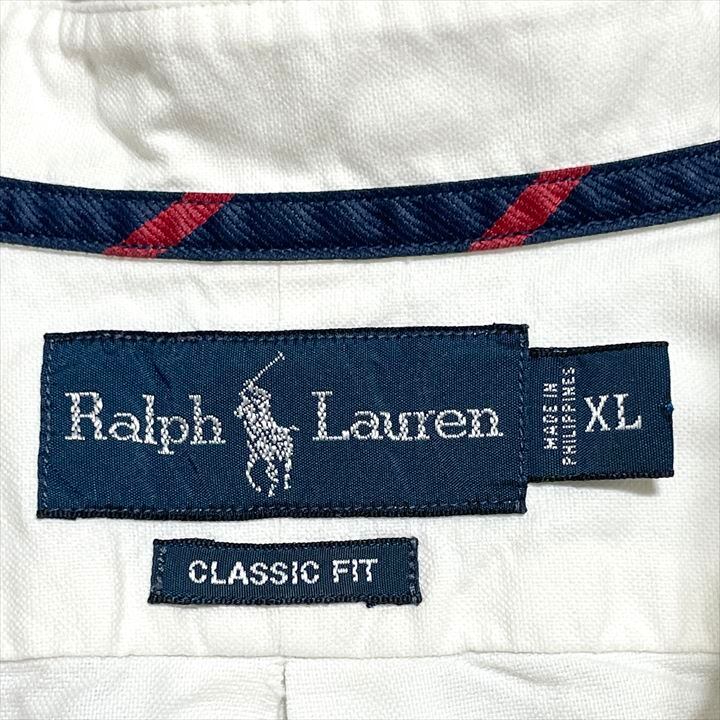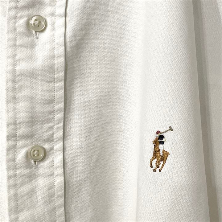90s 古着 ラルフローレン BDシャツ 白シャツ 刺繍ロゴ XL