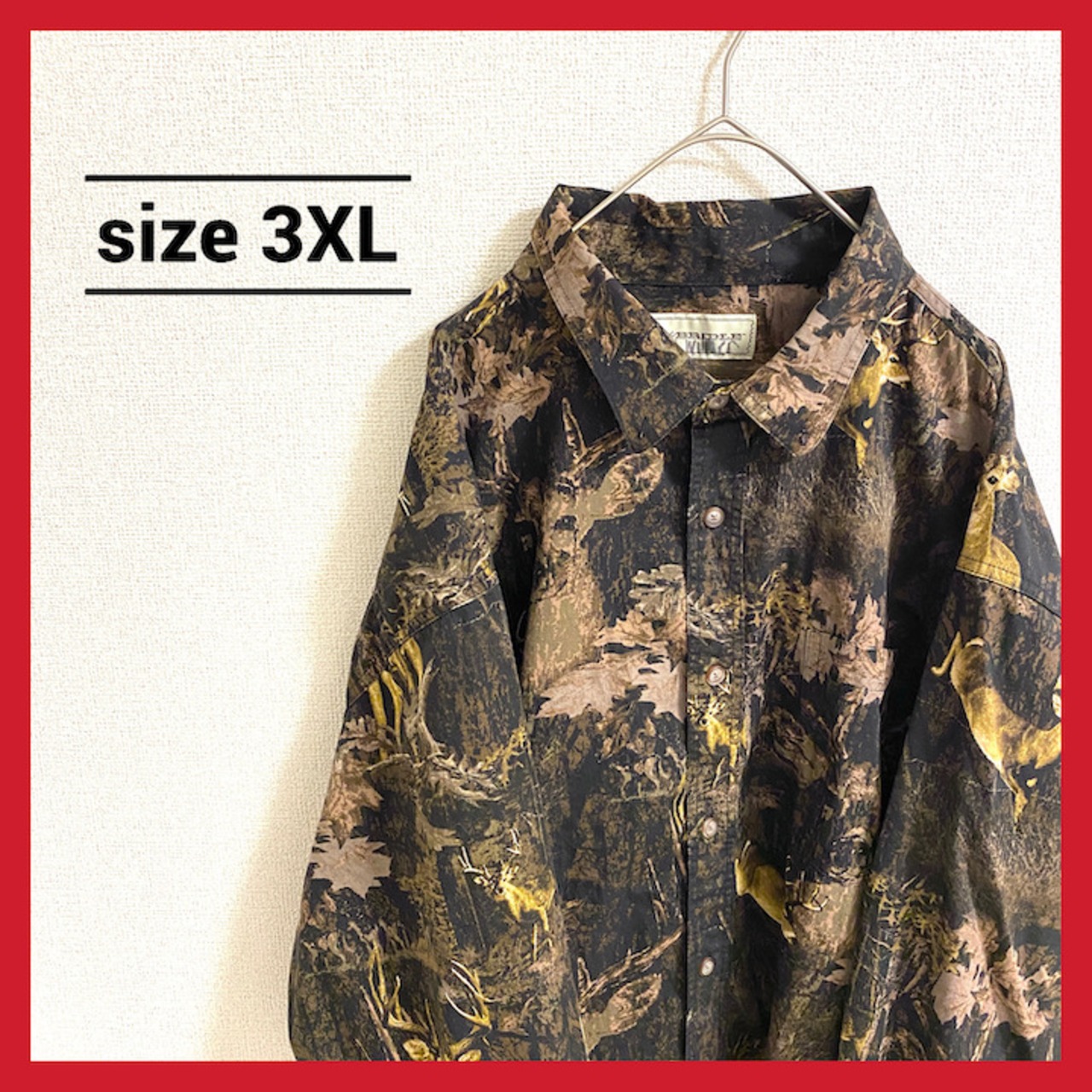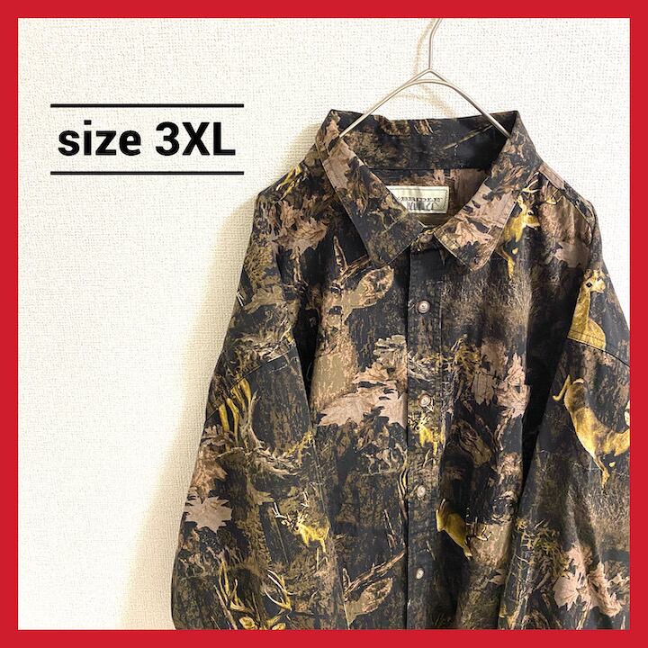 90s 古着 ノーブランド 長袖シャツ 柄シャツ オーバーサイズ 3X