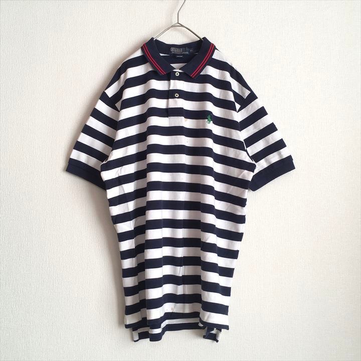 90s 古着 ポロラルフローレン ポロシャツ 刺繍ロゴ ゆるダボ ボーダー XL