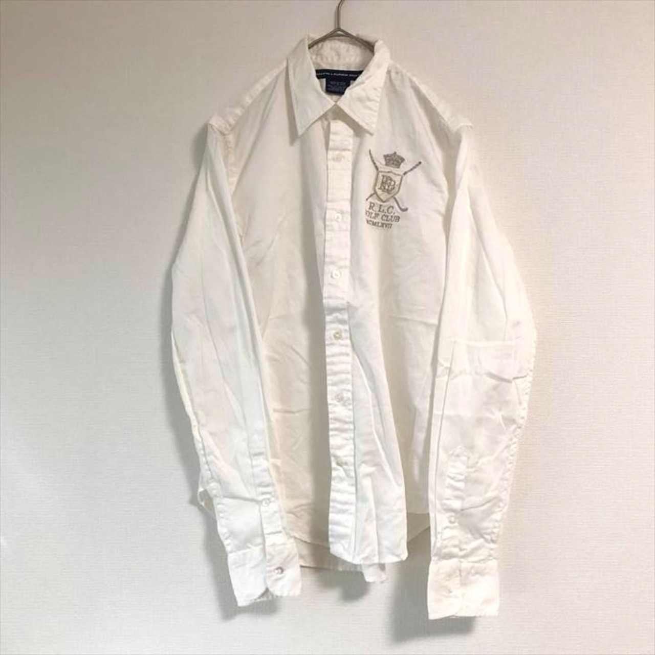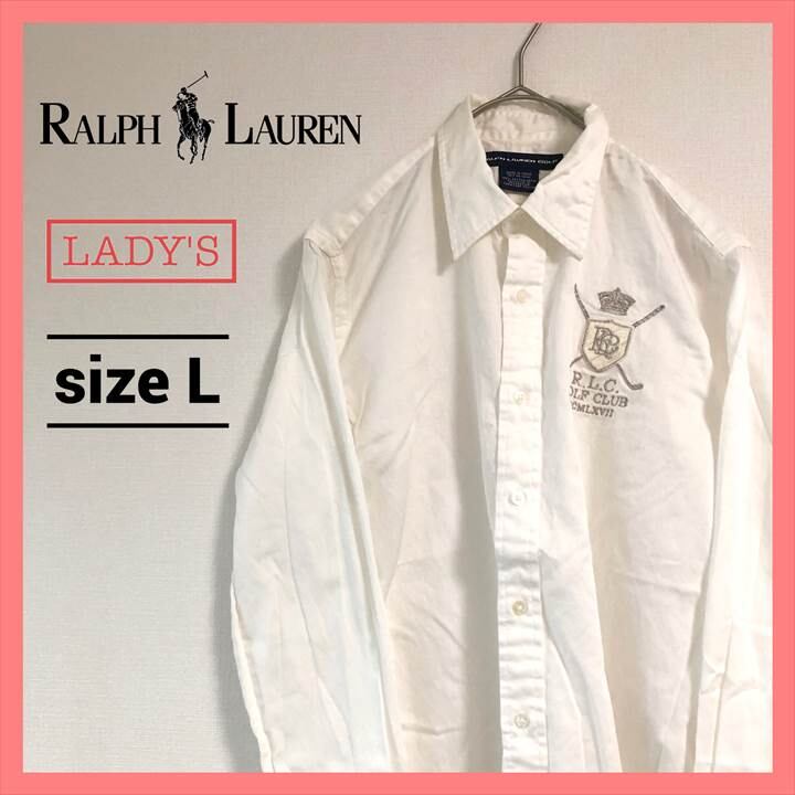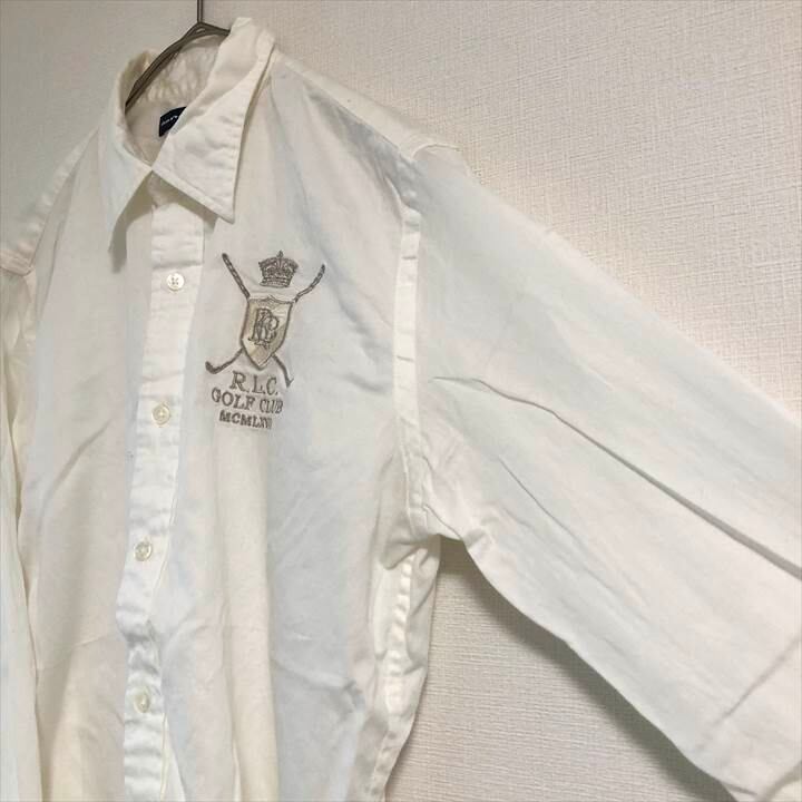 90s 古着 ラルフローレンゴルフ 長袖シャツ 白シャツ レディースL