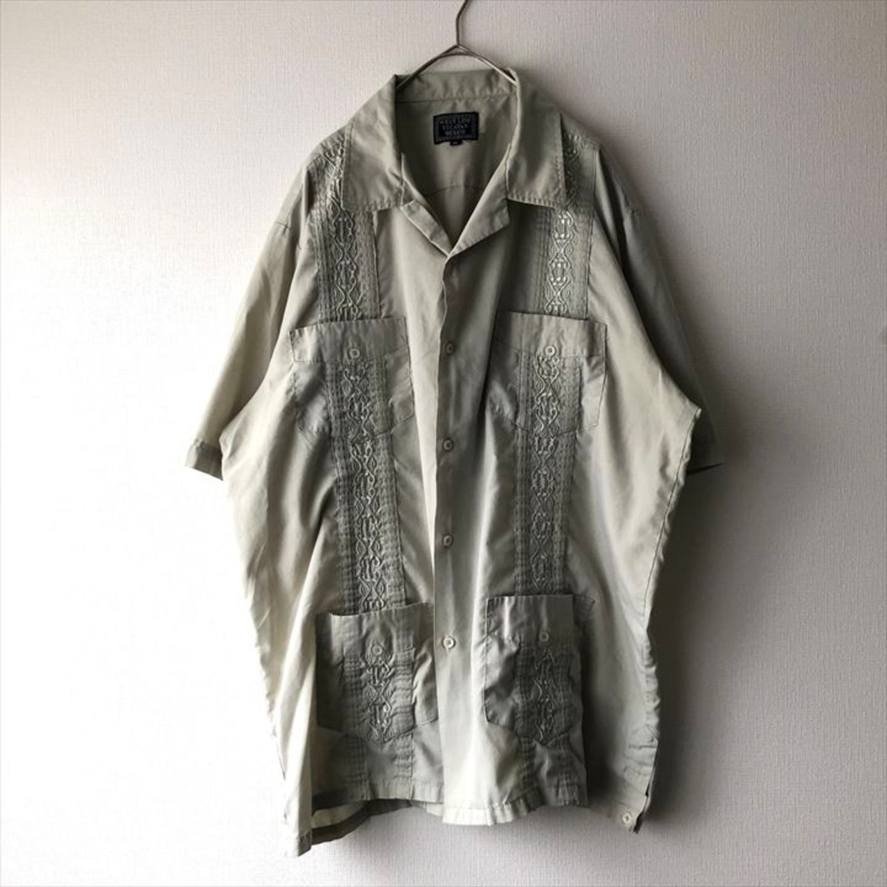 90s 古着 ノーブランド 半袖シャツ 刺繍 オーバーサイズ XL