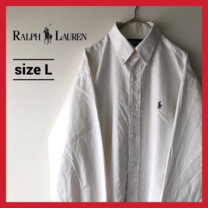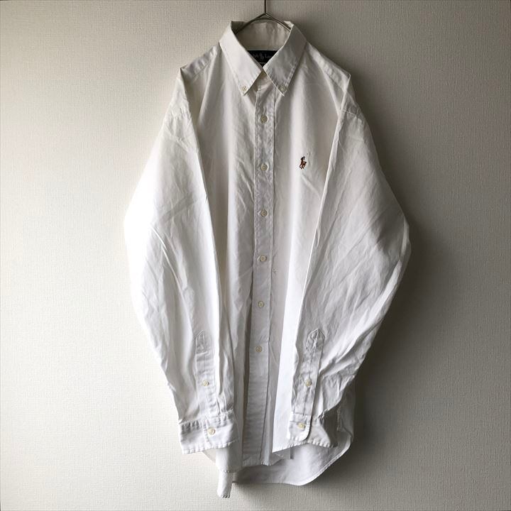 ラルフローレン 古着 BDシャツ 白シャツ 刺繍ロゴ L
