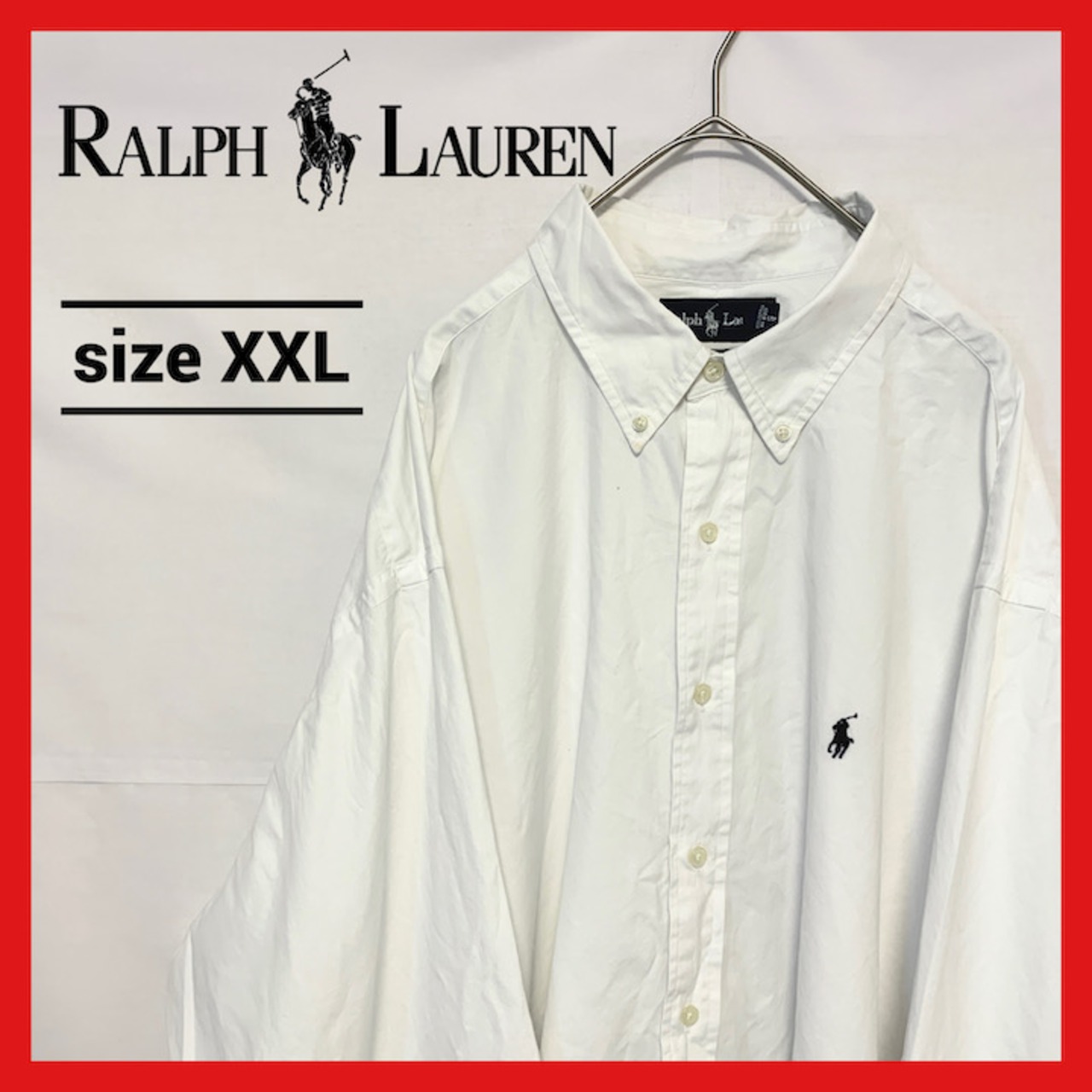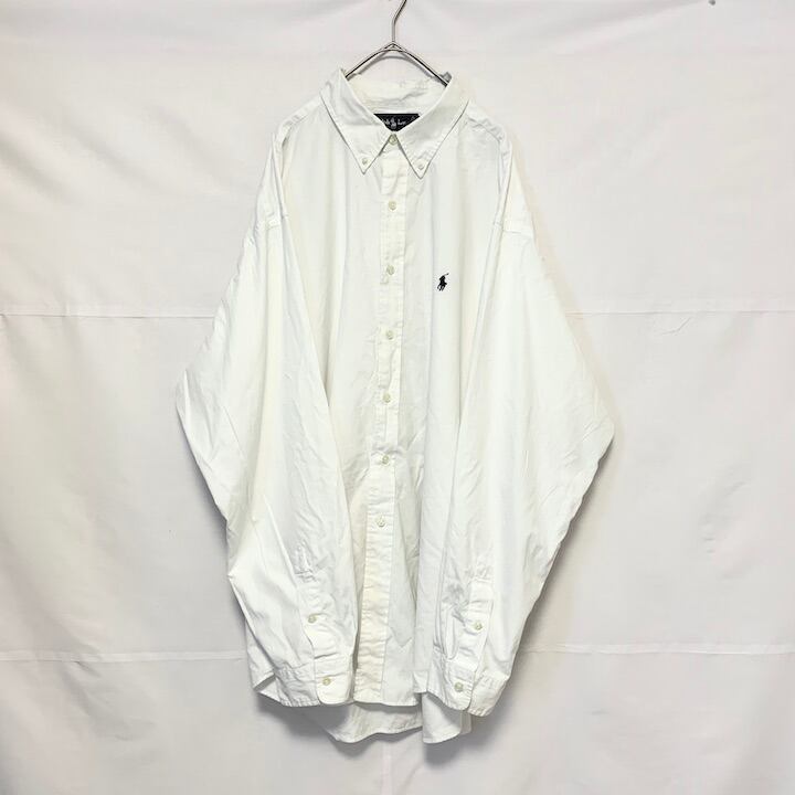90s 古着 ラルフローレン 長袖シャツ 白シャツ ゆるダボ XXL