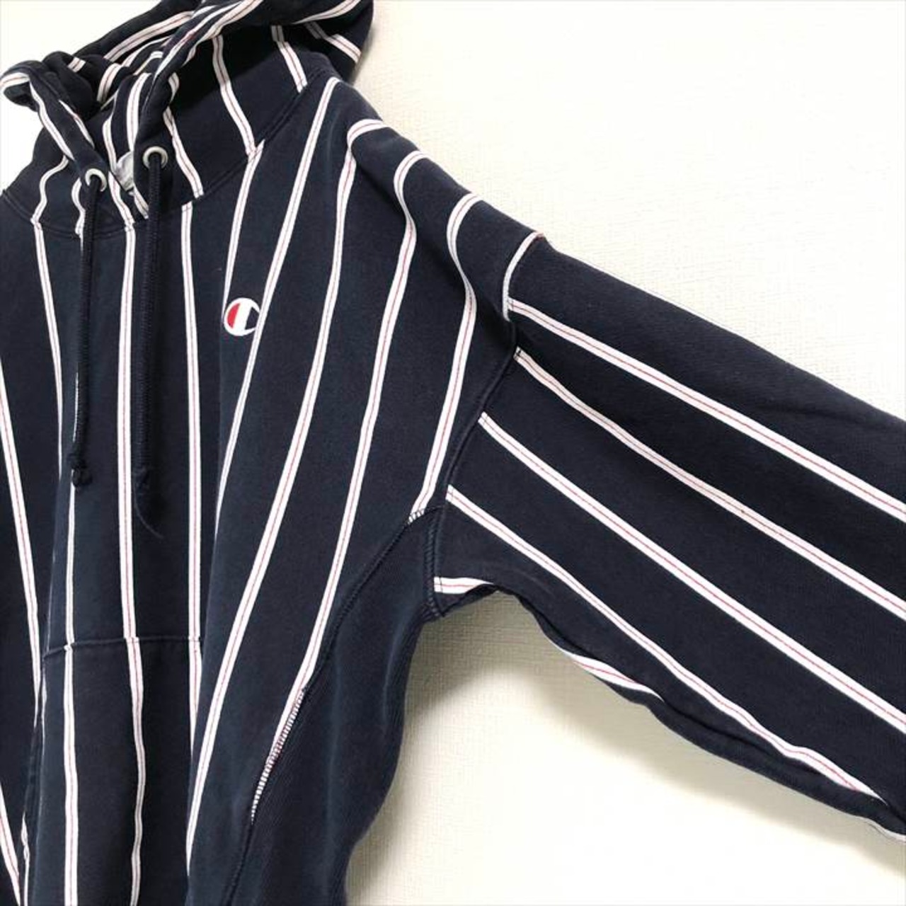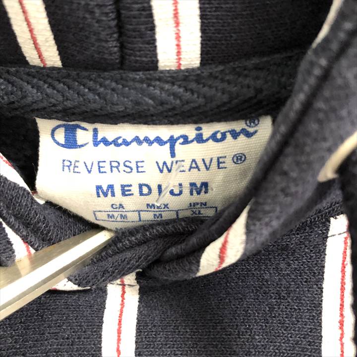 90s 古着 チャンピオン パーカー リバースウェーブ ストライプ M
