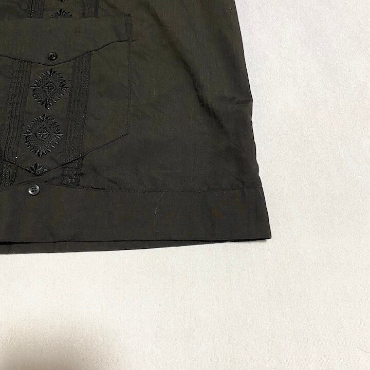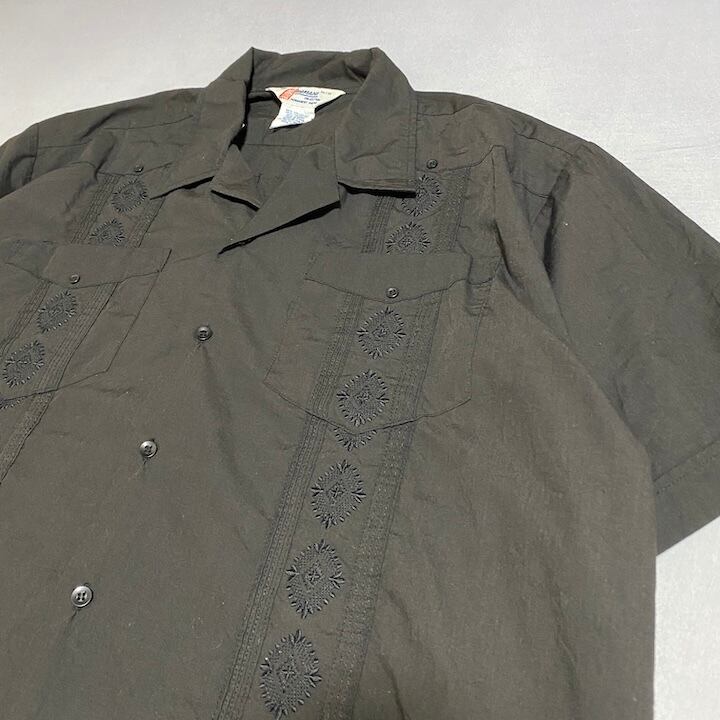ROMANI 古着 半袖シャツ 刺繍 キューバシャツ ブラック XXL