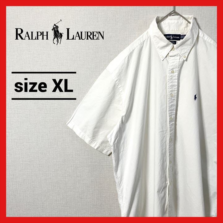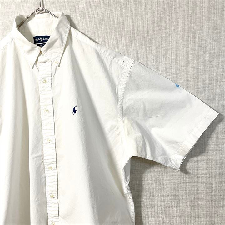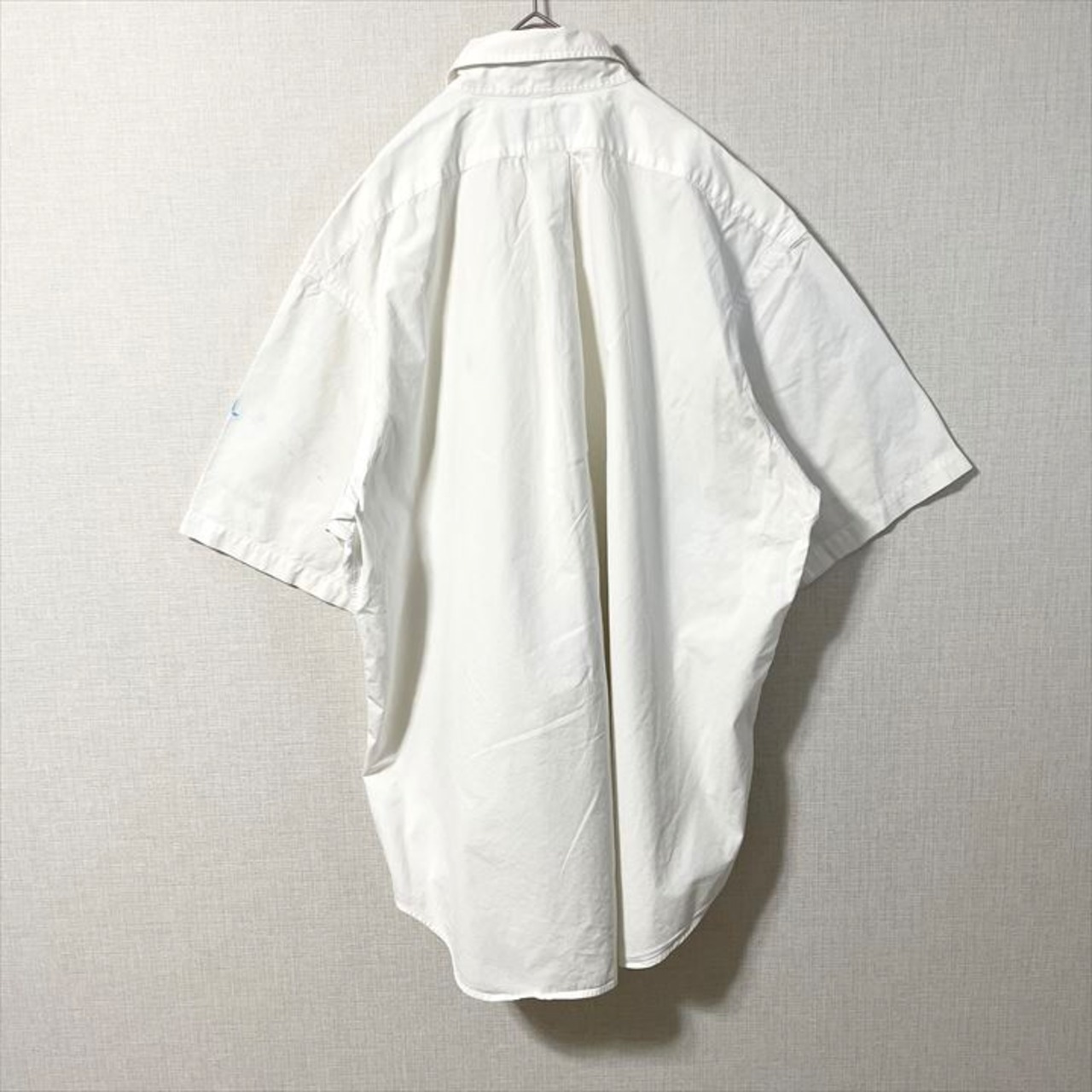90s 古着 ラルフローレン 半袖BDシャツ 白シャツ 刺繍ロゴ XL