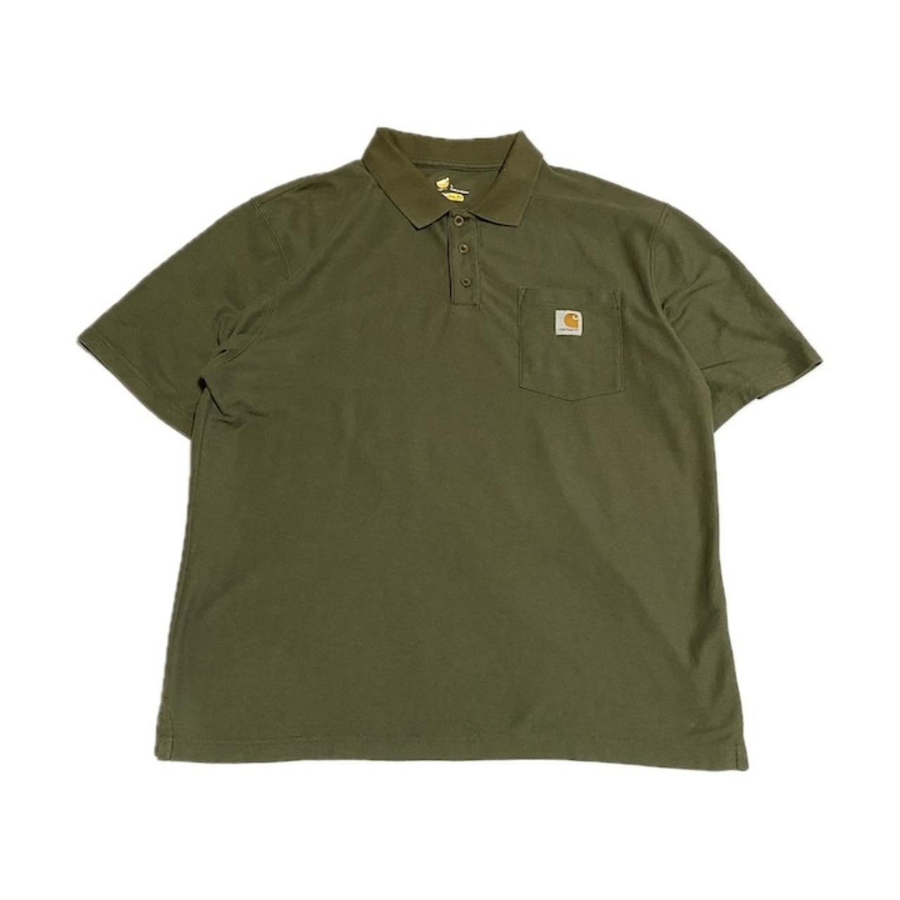 カーハート 古着 半袖ポロシャツ ワンポイントロゴ カーキ L