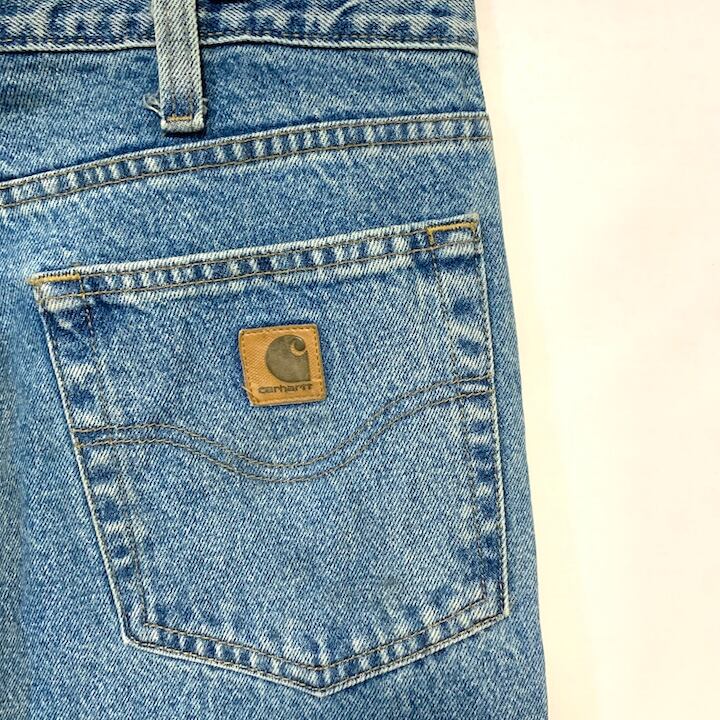 90s 古着 カーハート デニム ジーンズ 革ロゴ 36×34