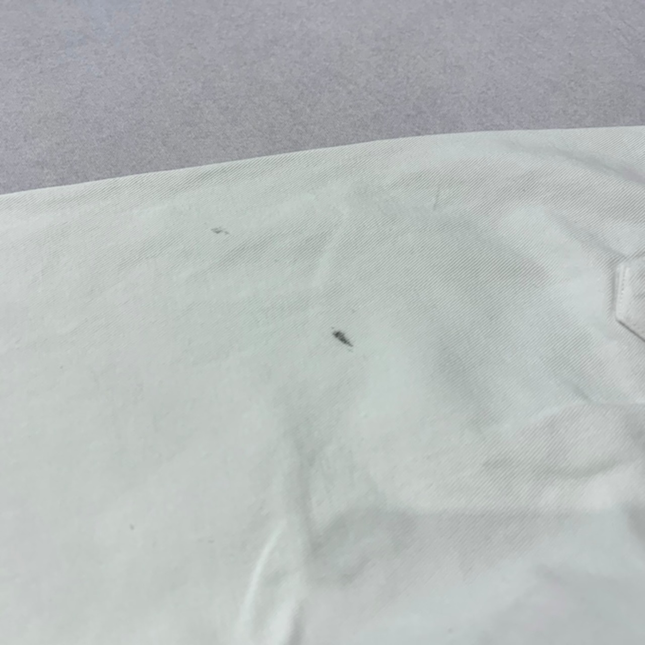 B ※シワ、襟元汚れ、両袖と袖口損傷、前見頃と後見頃に大きめのシミあり