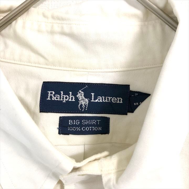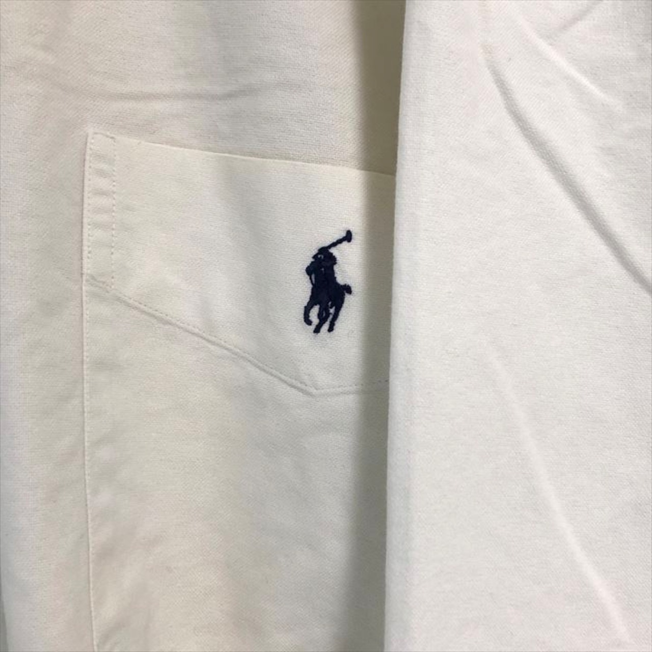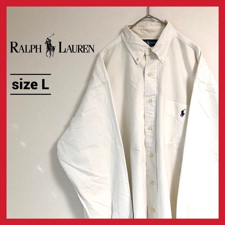 90s 古着 ラルフローレン 長袖シャツ 白シャツ 刺繍ロゴ L