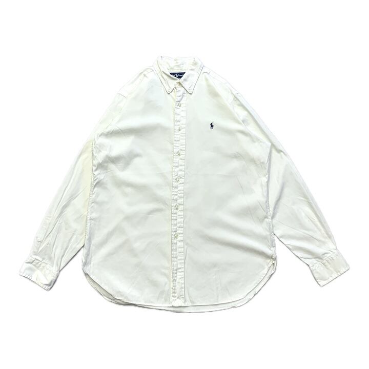 ラルフローレン 古着 長袖BDシャツ 白シャツ 刺繍ロゴ M