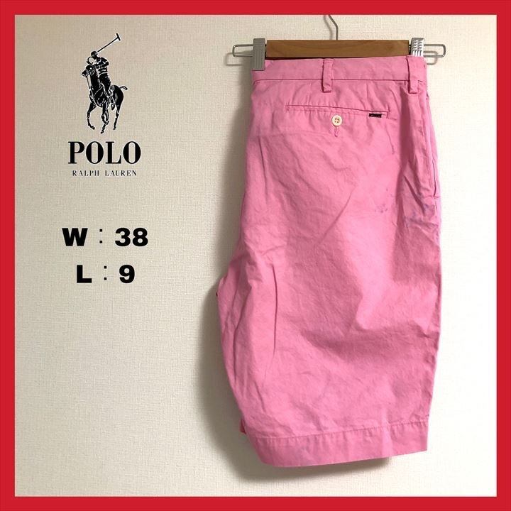 90s 古着 ポロラルフローレン ハーフパンツ ピンク 蛍光 W38L9