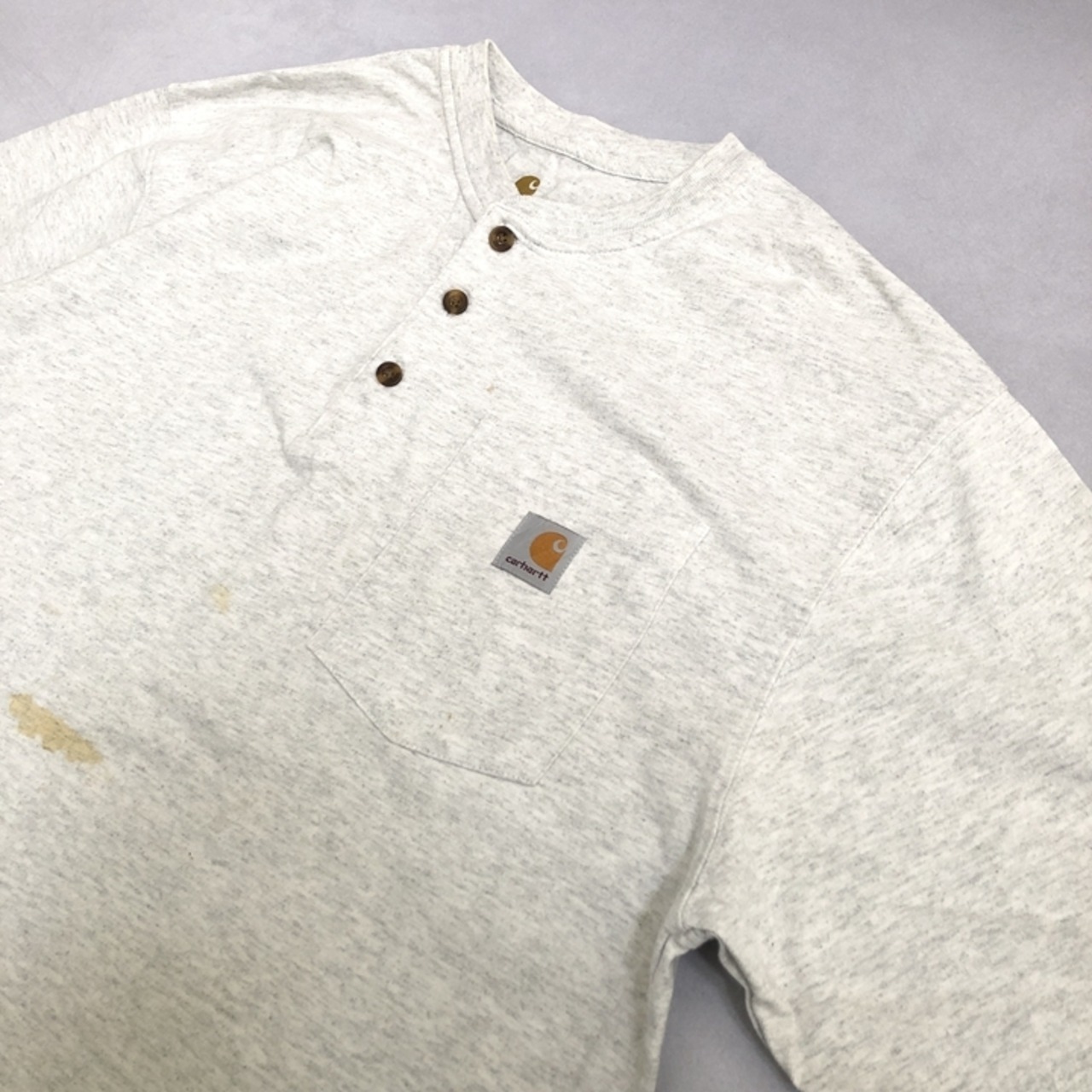 カーハート 古着 Tシャツ ヘンリーネック ライトグレー L