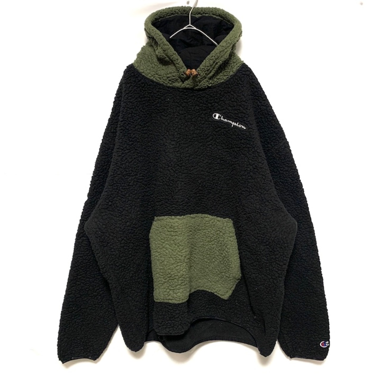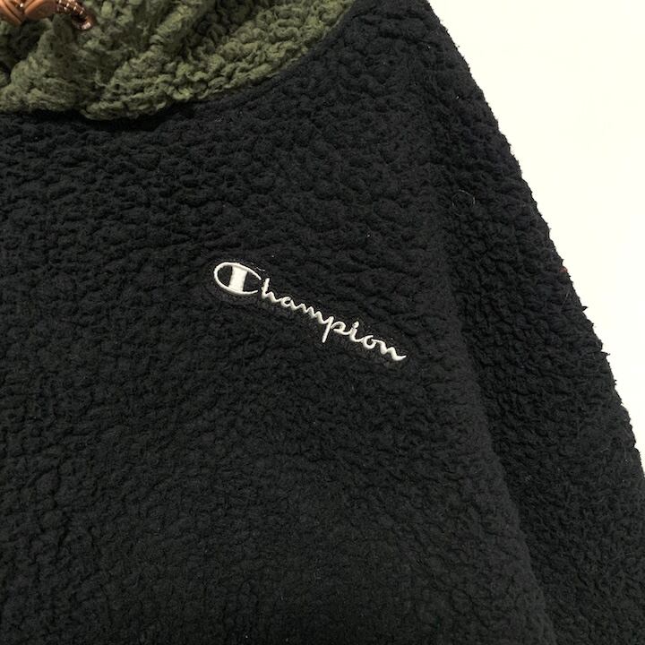 90s 古着 チャンピオン フリース ボアパーカー 刺繍ロゴ XXL