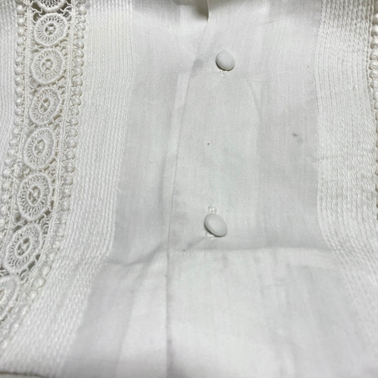 ノーブランド 古着 長袖シャツ 白シャツ 刺繍 S