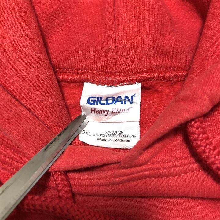 ギルダン 古着 パーカー ベースボール レッド 2XL