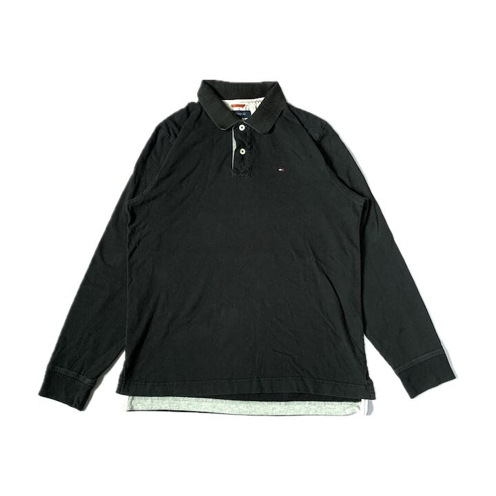 トミーヒルフィガー 古着 長袖ポロシャツ ブラック ゆるダボ L