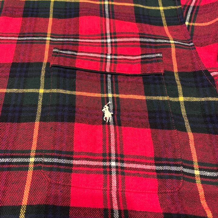 90s 古着 ポロラルフローレン 長袖シャツ チェック 刺繍ロゴ M