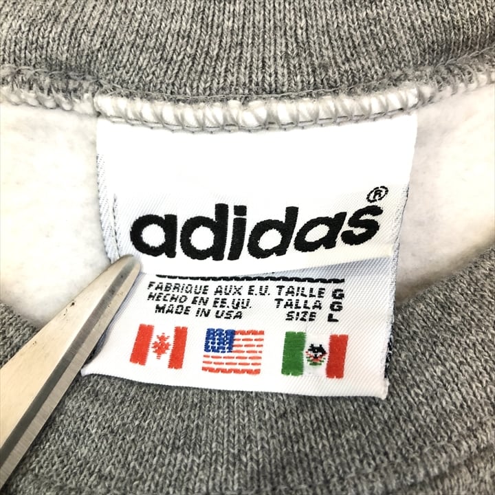 90s 古着 アディダス スウェット USA製 刺繍ロゴ ゆるダボ L