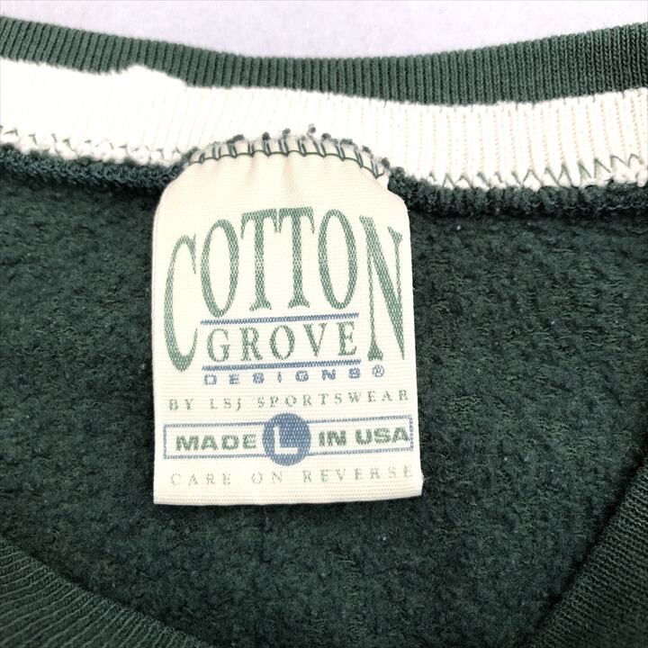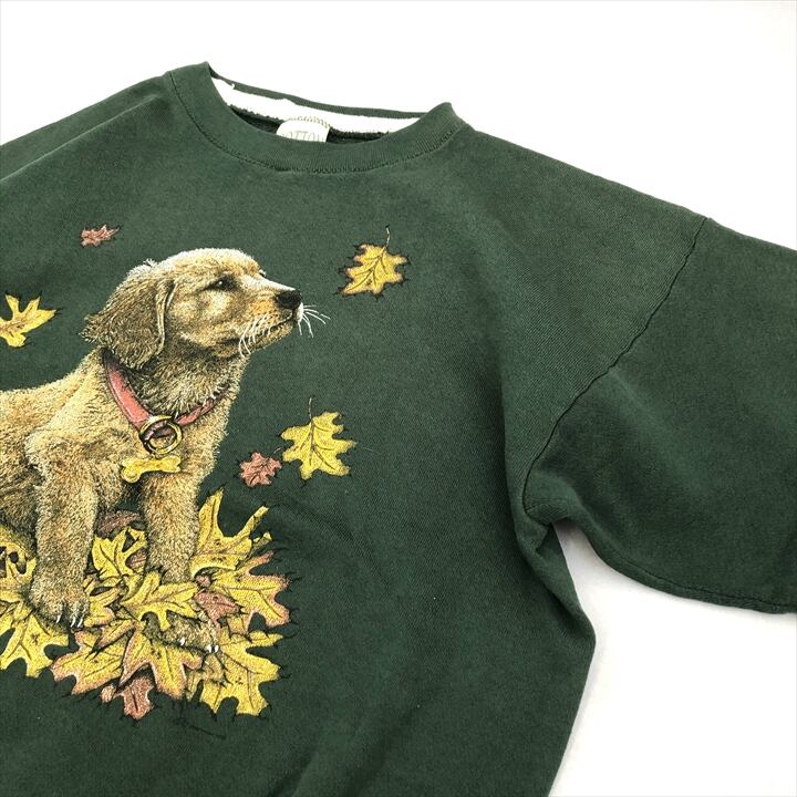 90s 古着 コットン スウェット USA製 犬 アニマル グリーン L