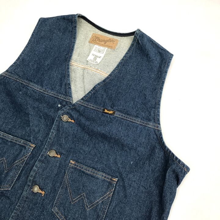 ラングラー 古着 デニムベスト ワンポイントロゴ ブルー 2XL