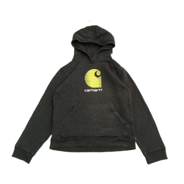 カーハート 古着 パーカー ビッグロゴ ブラック レディースL