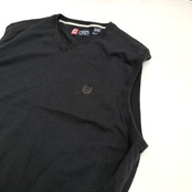 チャップス 古着 ベスト 刺繍ロゴ ネイビー ニット 2XL