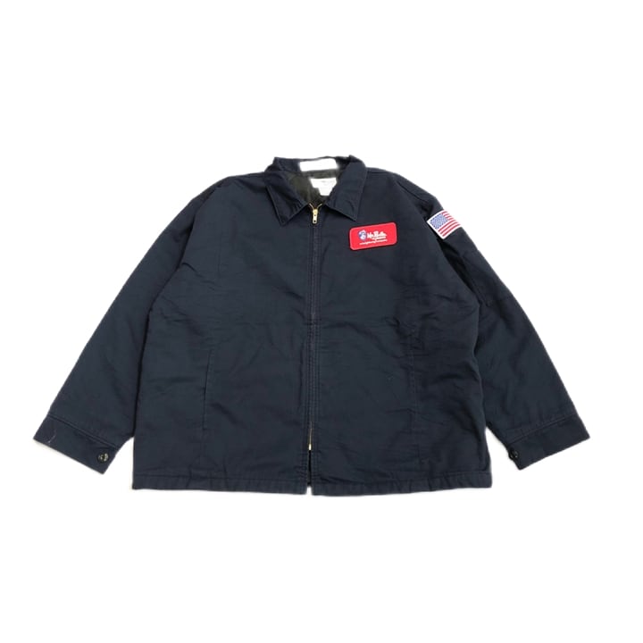 ノーブランド 古着 ワークジャケット ネイビー 企業ロゴ 2XL